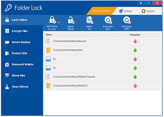 该应用程序提供三种创新方法来保护您的文件和文件夹,并防止未经授权的访问。